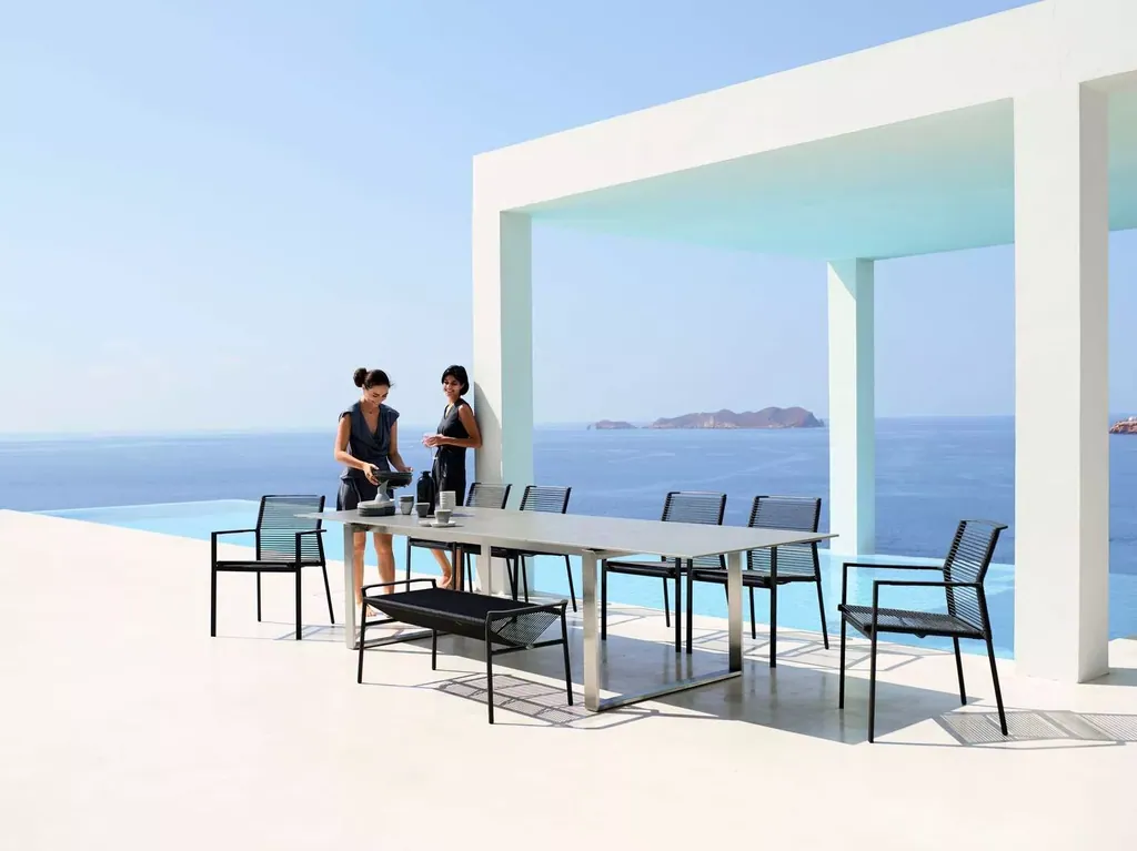 Die Edge Kollektion unserer Designer Strand+Hvass verleiht unserer gesamten Cane-line Auswahl einen neuen Stil. Der Aluminiumrahmen und die mit Cane-line Rope umwobenen Gartenstühle passen in viele Umgebungen und stechen dennoch als zeitgenössische und praktische Gartenmöbel hervor. Die Edge Serie wird aus gegossenen Aluminiumteilen hergestellt, die dafür entwickelt wurden sowohl ästhetisch ansprechend als auch sehr stabil zu sein. Diese Serie passt perfekt zu den Edge Tischen und der Edge Bank, die Platz für zwei zusätzliche Personen bietet. Der stramme Edge Gartenstuhl ist das Ergebnis eines langen und ästetischen Designprozesses, wo das dänische Design-Der Armlehnstuhl ist aus einem starken Aluminiumsrahmen konstruiert, der dem Stuhl ausser einer hohen Stabilität auch ein kantiges und modernes Aussehen verleiht. Der Edge Gartenstuhl ist stapelbar und passt somit perfekt dorthin, wo es nur begrenzte Aufbewahrungsmöglchkeiten gibt. Sitz und Rücken des Edge Gartenstuhles sind aus dem innovativen Cane-line Rope Material hergestellt. Die Faser ist pflegeleicht und angenehm auf der Haut und gibt dem Stuhl einen sehr hohen Komfort. Der Gartenstuhl passt hervorragend zum Edge Gartentisch, welcher ebenfalls von dem berühmten dänischen Designerpaar Strand+Hvass entworfen wurde.