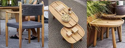 Die Cane-line Royal-Kollektion umfasst eien Gartenstuhl aus Teak und Cane-line Soft Rope in Dark Grey und zwei kleine Beistelltische, die sich mit vielen anderen Kollektionen kombinieren lassen.