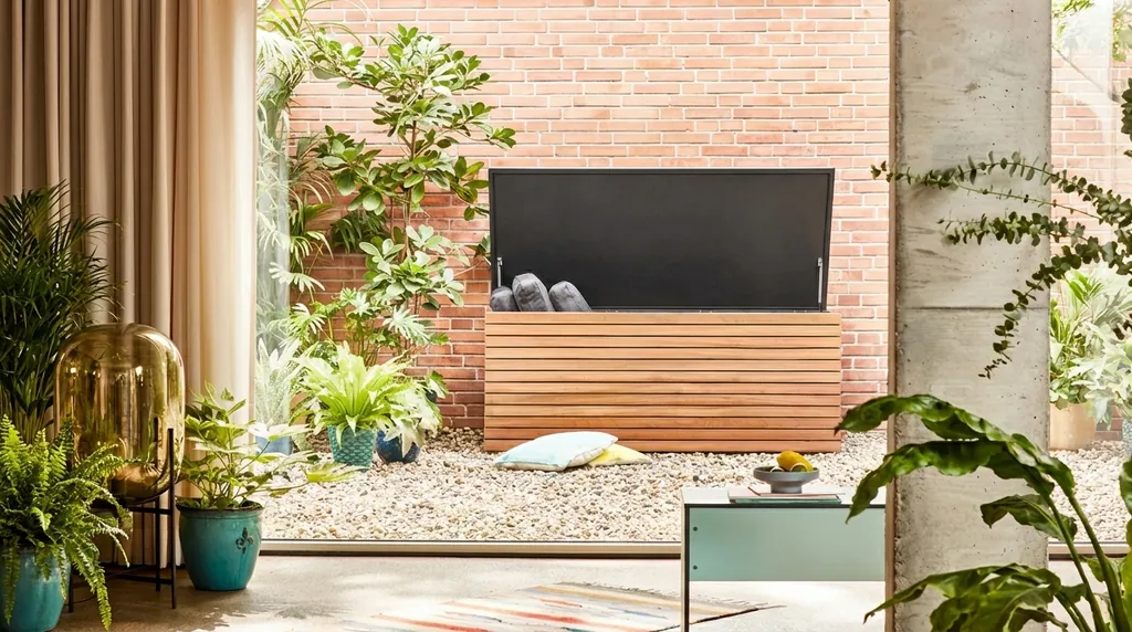 Kissentruhen Ab sofort sind Auflagen und Kissen dort, wo sie benötigt werden: ganz nah an der Sitzgruppe. Die Kissentruhe Forte ist auch über Winter eine elegante Unterbringung für alle Auflagen und zugleich funktionale Anrichte. Der Korpus ist aus witterungsbeständigem Holz in aufwendiger Lamellenoptik gearbeitet. Die ausgeklügelte Konstruktion sorgt für die Belüftung der eingelagerten Kissen. Der Deckel besteht aus HPL-Kunststoff in Anthrazit-Grau. Gasdruckfedern erleichtern das Öffnen und verhindern unbeabsichtigtes Überschlagen des Deckels. In der Kissentruhe Forte finden alle Kissen und Auflagen den sichersten Platz im Garten. Viele Sondermaße auf Anfrage möglich.
