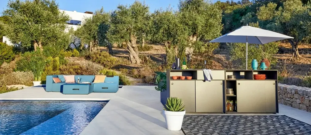 Gartenmöbel Couchtisch, Pflanzgefäß, Schattenspender und Raumteiler: Mit der neuen Ticino-Serie verwandeln Sie Räume und Terrassen nach Belieben. Sie können Ticino drehen und wenden, wie Sie wollen – die architektonischen Gestaltungsmöglichkeiten der hochwertigen Möbel sind nahezu grenzenlos. So gradlinig und funktional, wie Carsten Gollnick sie konzipiert hat, so widerstandfähig sind sie auch. Dafür sorgen die thermobehandelte Esche und die wetterfeste HPL-Beschichtung. Bei derart strapazierfähigen Materialien haben Sie die freie Wahl, ob Sie die Ticino-Elemente bepflanzen, als Couchtisch oder als Sitzmöbel mit eingelegtem Kissen nutzen möchten. Überaus praktisch ist auch diese Idee des Designers: Ein ins Pflanzgefäß integrierter Schlauchanschluss leitet übermäßiges Gieß- und Regenwasser gezielt ab. Obendrein lassen sich einige Modelle mit einem Sichtschutz aus HPL-Lamellen und textilen Gurtbändern ergänzen.