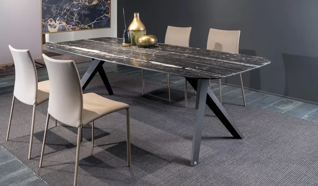 Die Form der TRILOPE-Tischplatte basiert auf dem „Reuleaux-Dreieck“ (auch bekannt als „Kugeldreieck“ oder „Reuleaux-Rotor“). Die Draufsicht wurde nach den Regeln der geometrischen Kunst abgerundet und geschliffen, sodass die glatte Optik der Platte zum Verweilen am Tisch einlädt. Die Platte ähnelt der eines runden Tisches, jedoch mit innovativer Optik und mehr Präsenz und Raffinesse. Die Basis besteht aus drei deutlich profilierten Beinen aus Massivholz, die tangential verbunden sind. Dadurch vereinen sie eine faszinierende Optik mit höchster Stabilität. Sockel und Tischplatte bilden eine perfekte ästhetische Einheit und wirken aus jedem Blickwinkel wie eine lakonische und faszinierende Skulptur.