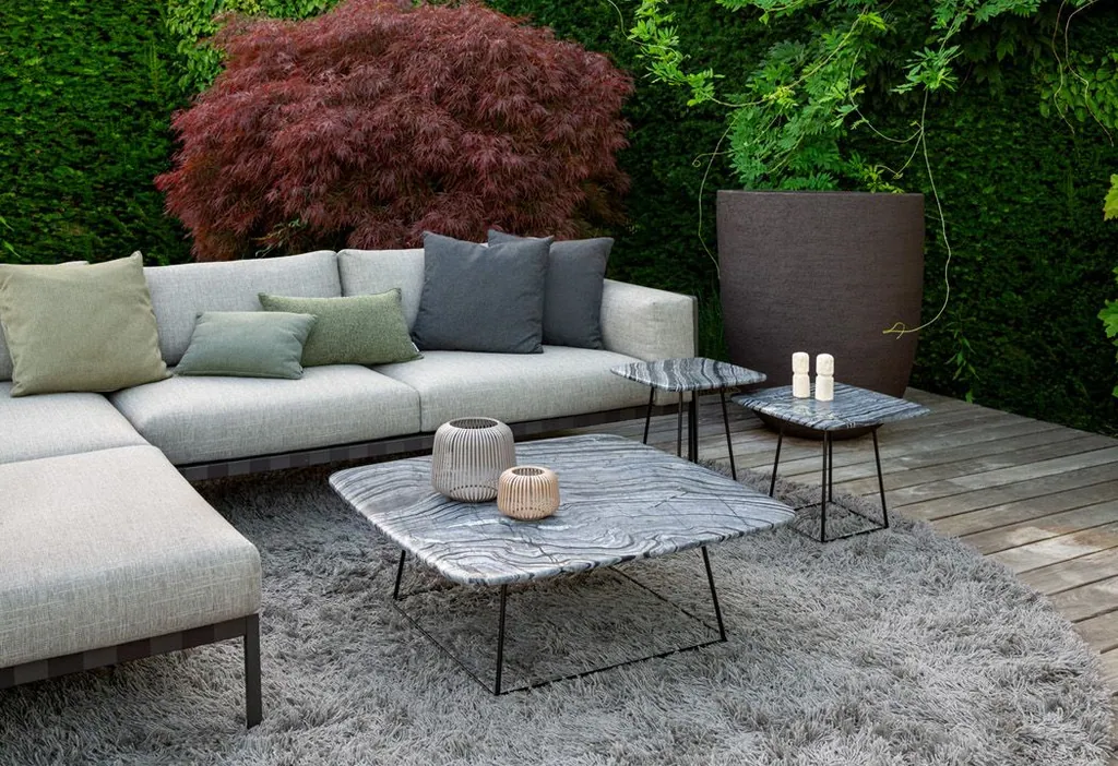 Ein Ensemble bestehend aus Couch- und Beistelltischen, das eine sehr ästhetische Vision umsetzt: den Einsatz von Naturstein als filigranes Gestaltungselement für die Wohnbereiche. Durch die fließende, weiche Kante wirkt die Steintischplatte vage. Dadurch entsteht eine sehr sanfte Silhouette. Manolo ist in allen Natursteinarten erhältlich. Der Sockel aus gebogenem Rundstahl ist in dunkelbronze laminiert oder lackiert in vielen Farbvarianten erhältlich.