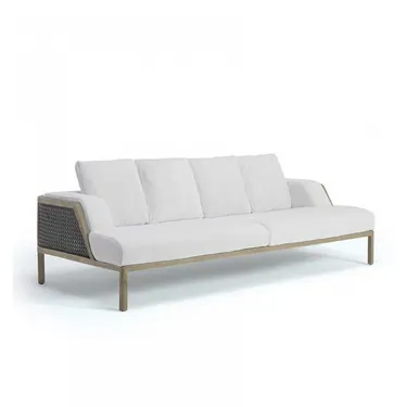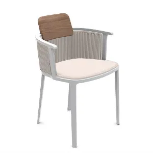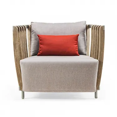Ethimo Ace wird aus natürlichem Teakholz und Aluminium hergestellt, wobei letzteres in vier Farbvarianten erhältlich ist: Schwarzrot, Moosgrün, Kaffeebraun und Warmweiß. Die Verwendung umweltfreundlicher Materialien, die auch im Freien verwendet werden können, macht Ace zu einer wetterfesten, sportlichen Kollektion, die sich an die Umgebung anpasst, in der sie aufgestellt wird.