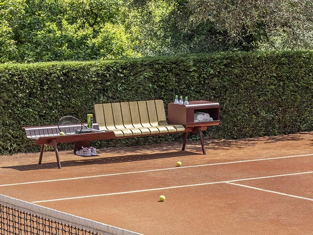 Mit der von Patrick Norguet entworfenen Ace-Kollektion begibt sich Ethimo auf ein neues Abenteuer und präsentiert eine Kollektion origineller Gartenmöbel für den Außensport, benannt nach dem siegreichen Aufschlag im Tennis. Ace wurde für die attraktive Ausstattung von Tennisplätzen, Schwimmbädern, Sportclubs und exklusiven Resorts entworfen und passt sich perfekt an den jeweiligen Kontext an. Die verschiedenen möglichen Konfigurationen unterstreichen die außergewöhnliche Flexibilität und Vielseitigkeit des Projekts, das nicht nur für Profi-Rennstrecken und große Sportveranstaltungen, sondern auch für normale sportliche Aktivitäten gedacht ist.