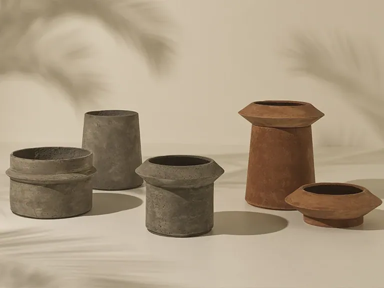 Neue geometrische Formen im Dialog mit der Natur. Die Bulbi-Kollektion umfasst sechs Vasen in verschiedenen Formen und Größen, die entweder einzeln, zusammen in Gruppen oder sogar als praktische Beistelltische verwendet werden können – eine originelle Neugestaltung der klassischen Verwendung dieses Einrichtungsaccessoires. Dank der handwerklichen Kunstfertigkeit erhält jede Oberfläche eine ungewöhnliche Textur, die betont, wie solide und einzigartig unvollkommen jedes Element ist. Jedes Stück ist mit unvergleichlichen ästhetischen Qualitäten versehen, die es einzigartig machen.