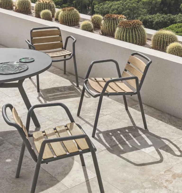 Der Armlehnstuhl Stitch zeichnet sich durch die dynamische Zeichnung des Metallnetzes von Sitzfläche und Rückenlehne aus und verbindet ein leichtes Design mit der Zweckmäßigkeit des Materials. Die Stapelbarkeit macht ihn auch für gewerbliche Zwecke ideal.