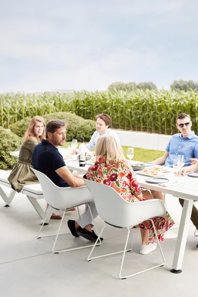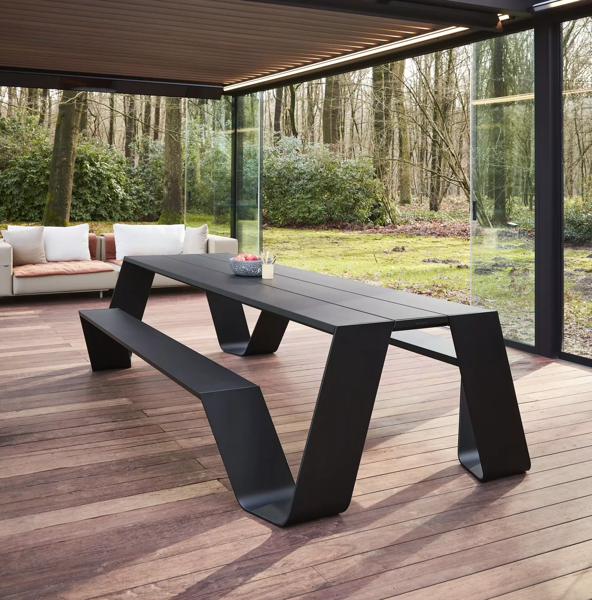 Zusammenrücken leicht gemacht. Die Hopper-Kollektion von Extremis bringt Menschen an einen Tisch – mit Picknick-Kombinationen, die Bänke und Tischplatte zu einer Einheit verschmelzen lassen. Schlanke Linien, robuste Materialien und eine Formensprache, die drinnen wie draußen funktioniert. Belgisches Design für gesellige Momente, unkompliziert und zeitlos schön.
