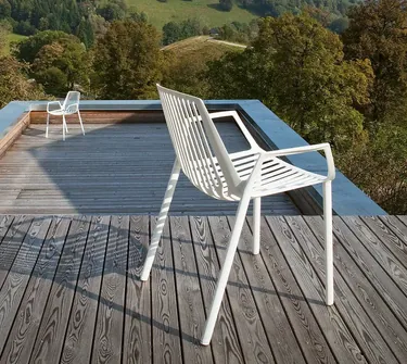 Die Designer Andrea Radice und Folco Orlandini haben mit ihrer Stuhlserie Rion ein beeindruckendes Werk geschaffen, welches in Italien produziert wird. Die Rion Stühle zeichnen sich durch eine robuste Sitzschale aus Aluminium-Druckguss und extrudierten sowie fließgepressten Aluminium Beinen aus und sind somit bestens für den Einsatz im Freien geeignet. Die Rion Stühle, die vom Radice Orlandini Designstudio entworfen wurden, beeindrucken durch ihre Leichtigkeit, die sich auch im Design widerspiegelt. Das futuristische Design verbindet Sitzkomfort mit Funktionalität und Leichtigkeit. Bei Bedarf können die Rion Gartenstühle platzsparend gestapelt werden und sind daher sowohl im privaten als auch im gewerblichen Bereich vielseitig einsetzbar. Die Rion Stuhlserie ist in verschiedenen Farben erhältlich und kann auf Anfrage auch mit passenden Sitzkissen bestellt werden.