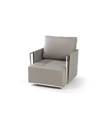 Ein Loungesessel, der in vielerlei Hinsicht überzeugt. Exzellenter Sitzkomfort, der zum Entspannen einlädt. Passend zu einer Lounge oder auch als Solitär – Kalos macht immer ein gute Figur. Kalos wird als Loungesessel und Hocker angeboten. Essstühle sind in Vorbereitung. Passend zum Loungesessel gibt es einen bequemen Hocker. Damit wird ein Optimum an Komfort erreicht. Das elegante Fußteil ist aus pulverbeschichteten Edelstahl. Für einen Rundumblick sorgt das einzigartige Drehgestell mit dem Drehungen bis 360 ° möglich sind. Neu im Outdoorbereich ist der besondere Polsteraufbau im Sitz. Dank flexibler Bänder und hochwertigem Möbelschaum wird ein punktuell weicher und dennoch fester Sitzkomfort erreicht. Auch die Rückenteile bieten durch die besondere Polsterung einen weichen kopfkissenartigen Komfort. Die wetterbeständigen Outdoor-Stoffe können beruhigt im Freien bleiben. Es kann aus einer Vielzahl von unterschiedlichen Dessins ausgewählt werden.