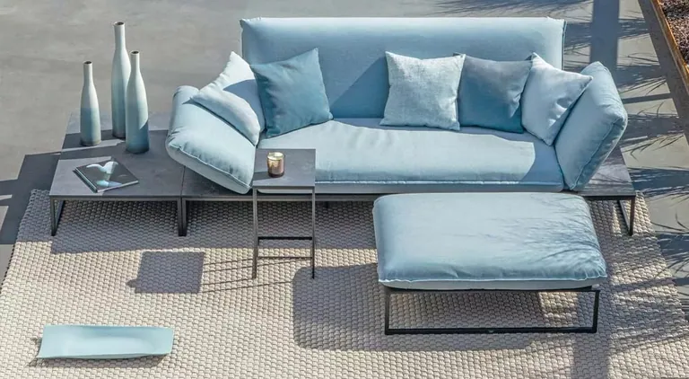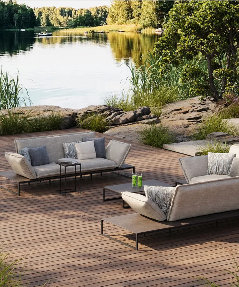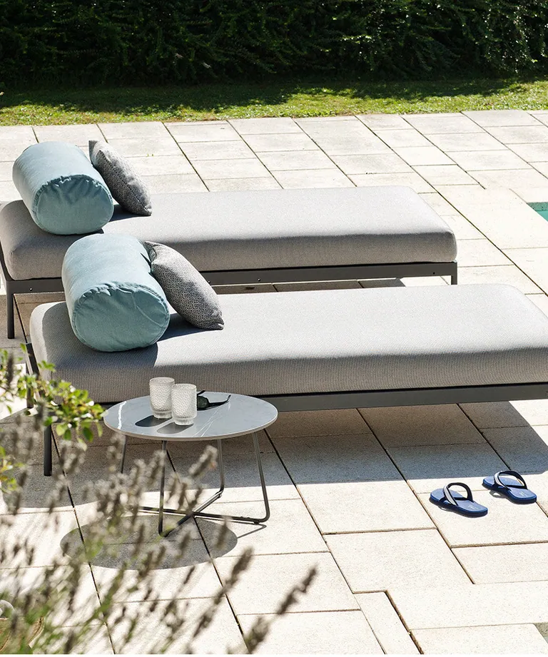 Die neue Lounge Flora mit ihren verstellbaren Arm- und Rückenlehnen lässt den Außenbereich gemütlich werden. Beim funktionalen Outdoor-Sofa lassen sich durch Abklappen Sitz- und Liegelandschaften nach Wunsch kreieren. Beistelltische, Polsterbänke und Anstelltische bieten dabei ausreichend Ablageflächen und nahezu endlose Kombinationsmöglichkeiten.
