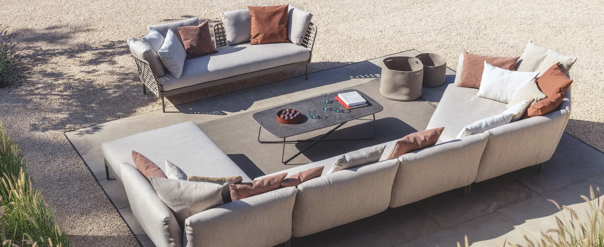 Lounge Fischer Möbel Kairos kommt aus der griechischen Mythologie und steht für den günstigen Augenblick. Dies ist ein schönen Frühlingstag oder warmer Sommerabend den man entspannt in der Kairos Lounge im Freien genießen kann. Kairos ist Entspannung pur. Mit der Kairos Lounge ist ein hohes Maß an Flexibilität möglich. Die einzelnen Sitzelemente werden einfach zusammengestellt, schon ist die faszinierende Outdoor Lounge fertig. Neu im Outdoorbereich ist der besondere Polsteraufbau im Sitz. Dank flexibler Bänder und hochwertigem Möbelschaum wird ein punktuell weicher und dennoch fester Sitz- und Liegekomfort erreicht. Auch die Rückenteile bieten durch die besondere Polsterung einen weichen Kopfkissenartigen Anlehnkomfort. Wer es luftig - leicht möchte kann als Rückenstütze auch die Rückenrollen wählen und diese nach Bedarf flexibel verwenden. Die wetterbeständigen Outdoor Stoffe können beruhigt im Freien bleiben. Praktische Ablageflächen und Beistelltische sind mit hochwertigem Teakholz- oder exklusiven Keramikplatten verfügbar.
