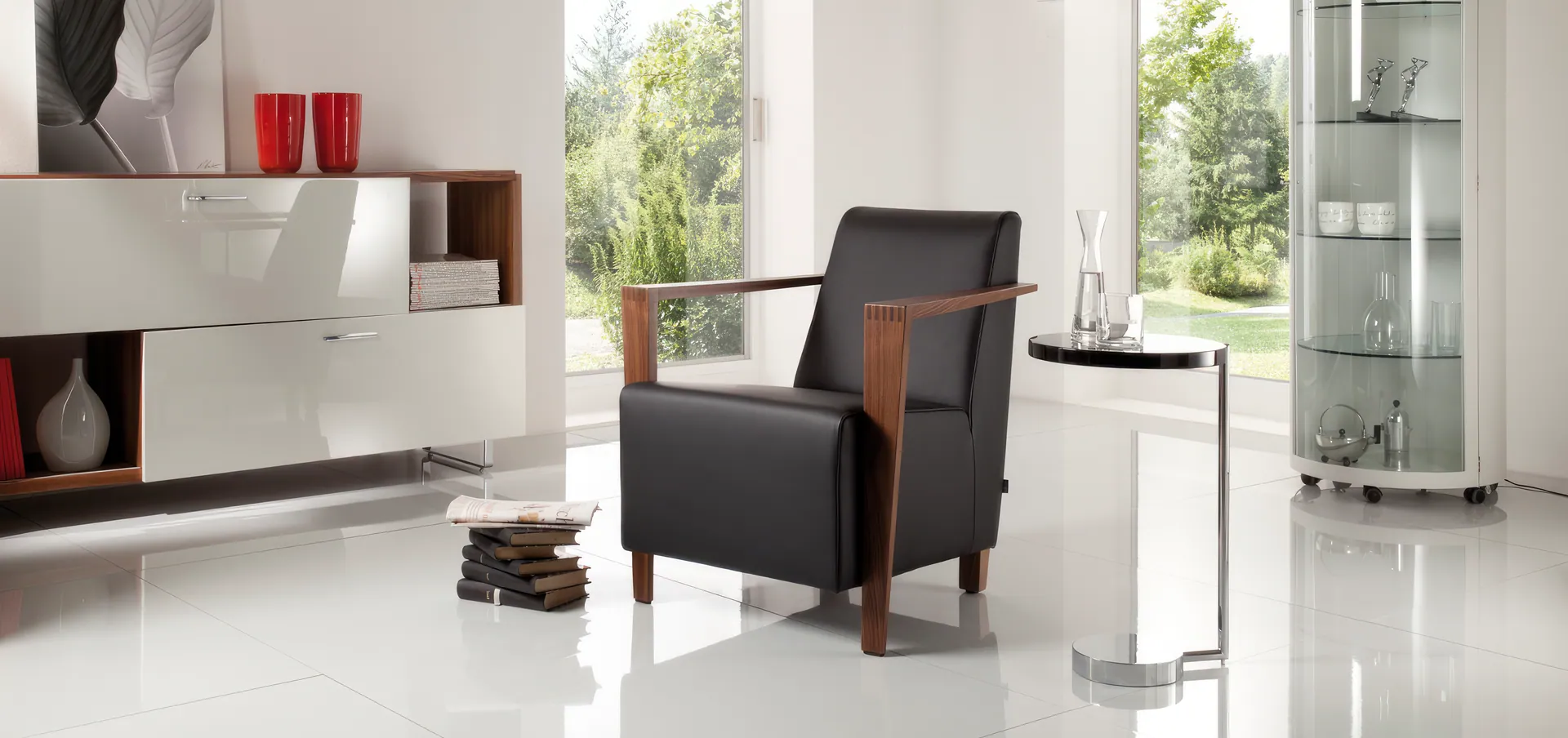 Die Armlehnen aus Massivholz mit gezinkter Holzverbindung setzen handwerkliche Akzente und verleihen dem Sessel eine besondere Eleganz. Der passende Sessel mit Hocker ergänzt die Kollektion perfekt und bietet zusätzlichen Komfort – eine ideale Wahl für alle, die einen modernen Sessel mit durchdachtem Design suchen.