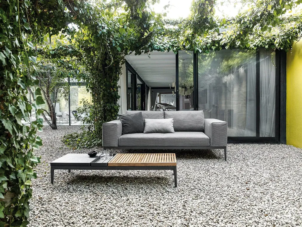 Outdoor-Kollektion Die Grid Kollektion von Gloster ist, darüber lässt sich schwerlich streiten, schlichtweg elegant und ein echter Blickfang. Sie ist aber vor allen Dingen auch das, was Sie daraus machen. Durch den modularen Aufbau von Grid haben Sie die Möglichkeit, Ihren eigenen Gestaltungswünschen viel Freiraum zu lassen. Genießen Sie diesen Freiraum hier bei der Villa Schmidt und anschließend beim Entspannen auf den wunderbaren Stücken dieser Kollektion. Grid gehört nun schon seit einigen Jahren zum hochklassigen Programm von Gloster. Dank ihrer zeitlosen Eleganz und der Erweiterung um neue Stücke wird sie auch weiterhin die Herzen von Liebhabern exklusiver Gartenmöbel höherschlagen lassen. Je größer die Auswahl wird, desto größer Ihre Freude an dieser erstklassigen Kollektion. Entdecken Sie hier bei der Villa Schmidt die einzelnen Stücke und finden Sie Ihr ideales Arrangement. Wenn Sie es schon bei der Bestellung entspannt mögen, sind die Loungegruppen perfekt für Sie. So erhalten Sie ein bereits optimal zusammengestelltes Arrangement aus Grid Modulen. Entdecken Sie die verschiedenen Kombinationen. Bestimmt ist auch für Ihre Wünsche die richtige dabei. Neben den einzelnen Modulen hat Grid von Gloster noch mehr Interessantes zu bieten. Werfen Sie zum Beispiel einen Blick auf die hochklassige Sonnenliege. Sie begeistert nicht nur im Großen und Ganzen, sondern auch durch stilvolle Details wie die praktische Ablage aus edlem Teakholz. Perfekt für ein kühles Getränk, die Sonnenbrille oder Ihr Lieblingsbuch. Ebenfalls außergewöhnlich: Der Grid Kaffeetisch, bei dem sich pulverbeschichtetes Aluminium, Marmor und Teakholz zu einem unnachahmlichen Gesamtbild vereinen. Jüngste Neuzugänge dieser Gloster Kollektion sind unter anderem eine noch größere Chaiselounge und eine Doppel-Sonnenliege. Außerdem haben Sie nun die Möglichkeit, Tischplatten aus Keramik zu wählen. Genießen Sie die große Freiheit und entscheiden Sie sich für Grid von Gloster.