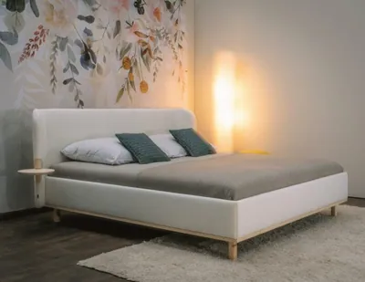 Die Bettenkollektion Benazir von Signet verbindet ein umhüllendes Design mit Lässigkeit. Das Kopfteil umschließt das Bett wie eine weiche Schale, während der bewusst locker gewählte Stoffbezug dem Bett eine entspannte Ausstrahlung verleiht. Besonders raffiniert: In die Seitenteile ist eine schwenkbare Ablage integriert, die aus massivem Zirbenholz gefertigt ist und einen angenehmen, beruhigenden Duft verbreitet. Alternativ sind Ablage und Rahmen auch in massiver Eiche erhältlich, optionale Holzleisten an der Bettkante unterstreichen die natürliche Wirkung. Benazir verbindet Komfort und Funktionalität mit einem Hauch von Naturverbundenheit.