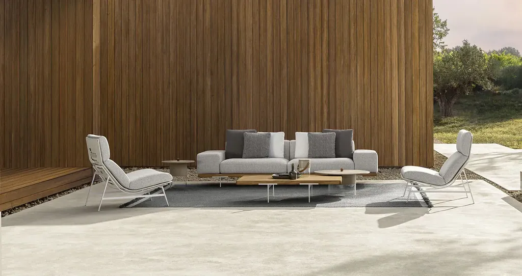 Die Talenti Gartenmöbel Kollektion Allure zeichnet sich durch eine informelle und gleichzeitig elegante, zeitgenössische und dennoch traditionelle Ausstrahlung aus. Die Kollektion wurde von Christophe Pillet entworfen und entstand aus dem Wunsch, Eleganz und Einfachheit zu verbinden. Durch ein ungewöhnliches Modularitätskonzept entsteht ein horizontaler Rahmen aus robustem Accoya-Holz, der von zartem Aluminiumfuß gestützt wird. Geometrische und lineare Kissen in verschiedenen Größen ermöglichen eine Vielzahl an Kombinationen und Szenarien. Das Ergebnis ist eine Kollektion mit einer anspruchsvollen Seele, die jedem Außenbereich Charakter verleiht.