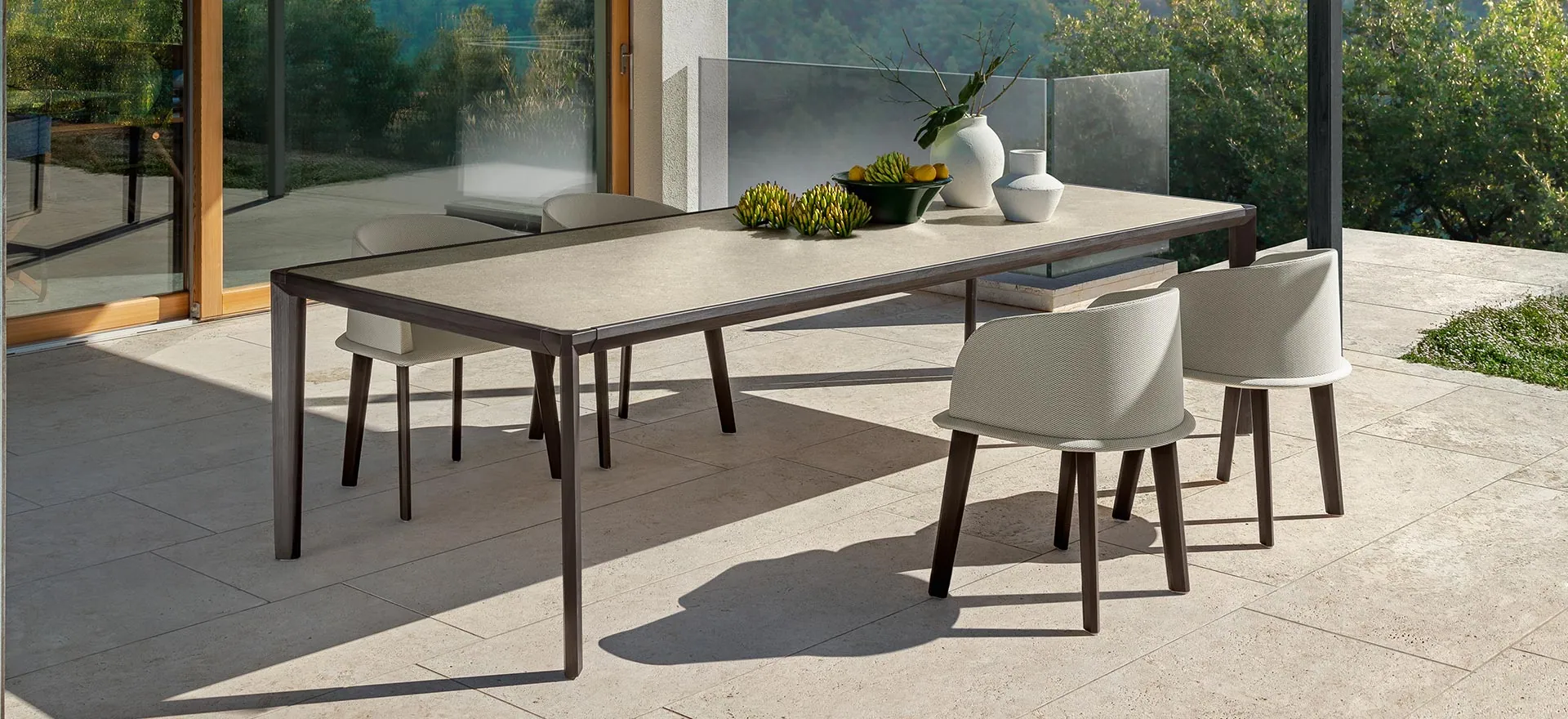 Leitfaden der Kollektion Cleo Teak ist der Wunsch, ein junges, dynamisches Produkt zu kreieren, das in der Lage ist, den Betrachter emotionell anzusprechen, wobei die visuelle Wahrnehmung direkt auf die Gefühle wirkt. Diese Kollektion entsteht aus der Lust, mit Kontrasten und neuen Materialkombinationen zu spielen und zu experimentieren: die natürliche Robustheit des Teakholzes, aktuelle zementgebundene Oberflächen zusammen mit der überraschenden Eleganz der Textilbespannungen schaffen eine Linie, die sich perfekt jedem Stil und jedem Bereich im Freien anpasst. Die lebhaften Farben und die tiefen Sitzflächen vermitteln gute Stimmung und Relax. Eine schicke, trendy Kollektion, frisch und fröhlich, für ein junges und junggebliebenes Publikum.
