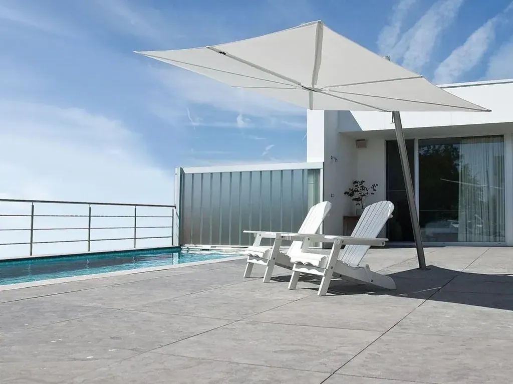 Spectra aus der Kollektion UMBROSA Die Villa Schmidt präsentiert Ihnen einen wahrhaft spektakulären Schirm aus dem Hause Umbrosa. Verweilen Sie ein bisschen und lassen Sie sich von der Ausstrahlung des Spectra begeistern. Einen solch außergewöhnlichen Schirm sieht man nicht alle Tage. Einen klassischen Schirm werden Sie im Angebot von Umbrosa vergebens suchen, dazu sprüht man dort einfach zu sehr vor interessanten Ideen. In diesem Fall war es der belgische Designer Dirk Wynants, welcher einen Schirm entworfen hat, der zu faszinieren weiß. Der Spectra zeichnet sich unter anderem durch die Schlankheit seines Schirmdaches aus. Straff gespannt legt es sich hoch in der Luft über die Köpfe der Schattengenießer: ein wunderschönes Bild. Seine Fächertechnologie bietet zudem die innovative Möglichkeit den Schirm horizontal zusammenzufalten. Wählen Sie in Bezug auf die Bespannung des Spectra zwischen verschiedenen eleganten Farben wie Taupe, Parma oder Nero. Geben Sie dem Spectra so das passende Gesicht für seinen Standort. Schon beim ersten Anblick ist man geneigt, sich in diesen Umbrosa-Schirm zu verlieben. Das liegt vielleicht daran, dass er mit ein bisschen Neigung eine besonders dynamische und ansprechende Figur macht. Aber auch in der geraden Variante ist der Spectra eine Klasse für sich. Wählen Sie hier bei der Villa Schmidt Ihren Favoriten und bereichern Sie Ihr Zuhause um ein echtes Schmuckstück aus dem Hause Umbrosa. Der Spectra sieht nicht nur edel aus, er bleibt auch bei einem kräftigen Sommerwind stark und standhaft. Holen Sie sich diesen starken Sommerbegleiter nach Hause und genießen Sie die Sonnentage unter einem Schirm, wie man ihn nicht alle Tage sieht.
