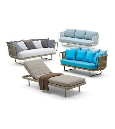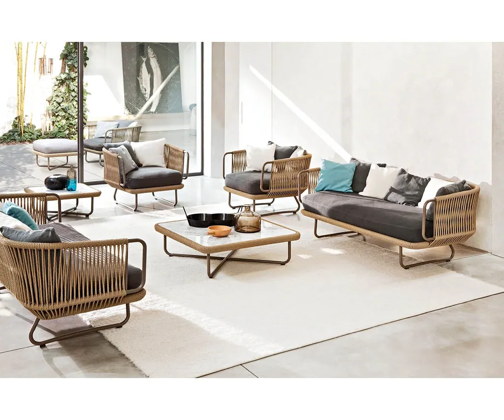 Varaschin Babylon Loungemöbel ist eine moderne Gartenmöbel Kollektion mit einem pulverbeschichtetem Aluminiumgestell, die für den Einsatz im Freien konzipiert ist. Die robuste, mit Kunstfaserseil dekorierte Babylon Loungegruppe eignet sich ideal um mit Stil und Charme Ihr Garten oder Ihre Terrasse zu schmücken. Die Kombination des Seilgeflechtes mit den bunten Stoffen der Polsterung strahlt Wärme und Originalität aus. Loungetische sind mit Marmor- bzw. HPL Platten ausgestattet. Babylon - eine Loungegruppe für alle Jahreszeiten. Seit 1969 prägt Varaschin, ein venezianischer Marktführer aus der Outdoor Gartenmöbel Branche, die Bindung zwischen traditioneller Handwerkskunst und modernen ästhetischen Trends. Neben der Produktion von Outdoor-Kollektionen führt Varaschin Verträge aus, die von den angesehensten Namen in der italienischen und internationalen Design-Szene unterzeichnet werden. Jede Gartenmöbel Produktlinie hat ihre eigene Geschichte und Identität. Viel Liebe zum Detail, Originalität und Ästhetik sind die Kernmerkmale der Varaschin Kollektionen. In einem ausgeglichenen Spiel zwischen Leichtigkeit und Komfort entstehen einzigartige Gartenmöbel, die den Innenraum erweitern und mit der Natur verbinden.