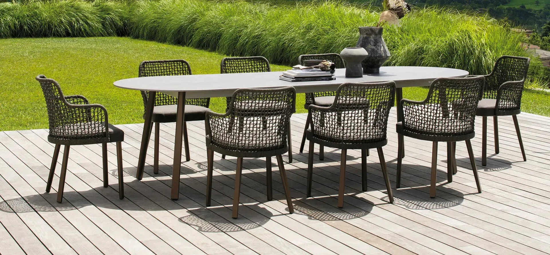 Die Outdoorkollektion Varaschin Emma mit pulverbeschichtetem Aluminiumgestell oder Iroko-Beinen bietet zahlreiche Kombinationen aus verschiedenen Materialien und Stoffen. Die Rückenlehne des Emma Outdoorstuhls kann aus handgewebtem Kunstfaserkordel, Textilene oder einem wasserdichten Outdoor-Stoff aus der breiten Palette von Varaschin hergestellt werden. Es ist ein sehr praktischer und robuster Gartenstuhl, ideal für die Einrichtung von Hotelterrassen oder Esszimmern. Emma Outdoor Stuhl ist ein schicker und moderner Stuhl, der mit vielen anderen Outdoor-Möbeln vielseitig kombiniert werden kann, um das perfekte Outdooroutfit für Gärten oder Veranden zu schaffen. Vom Shabby-Chic bis zum Industrial, vom romantischen bis zum modernen Stil: Ein Stuhl, der in fast jede Umgebing und zu jeder Stimmung passt. Seit 1969 prägt Varaschin, ein venezianischer Marktführer aus der Outdoor Gartenmöbel Branche, die Bindung zwischen traditioneller Handwerkskunst und modernen ästhetischen Trends. Neben der Produktion von Outdoor-Kollektionen führt Varaschin Verträge aus, die von den angesehensten Namen in der italienischen und internationalen Design-Szene unterzeichnet werden. Jede Gartenmöbel Produktlinie hat ihre eigene Geschichte und Identität. Viel Liebe zum Detail, Originalität und Ästhetik sind die Kernmerkmale der Varaschin Kollektionen. In einem ausgeglichenen Spiel zwischen Leichtigkeit und Komfort entstehen einzigartige Gartenmöbel, die den Innenraum erweitern und mit der Natur verbinden.